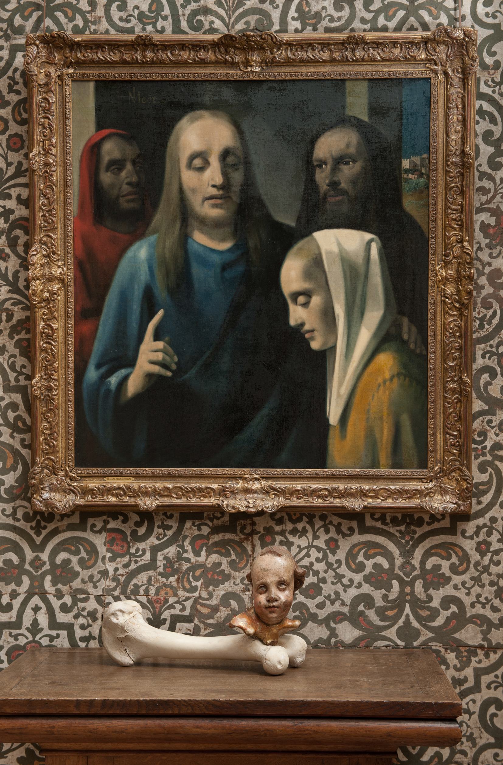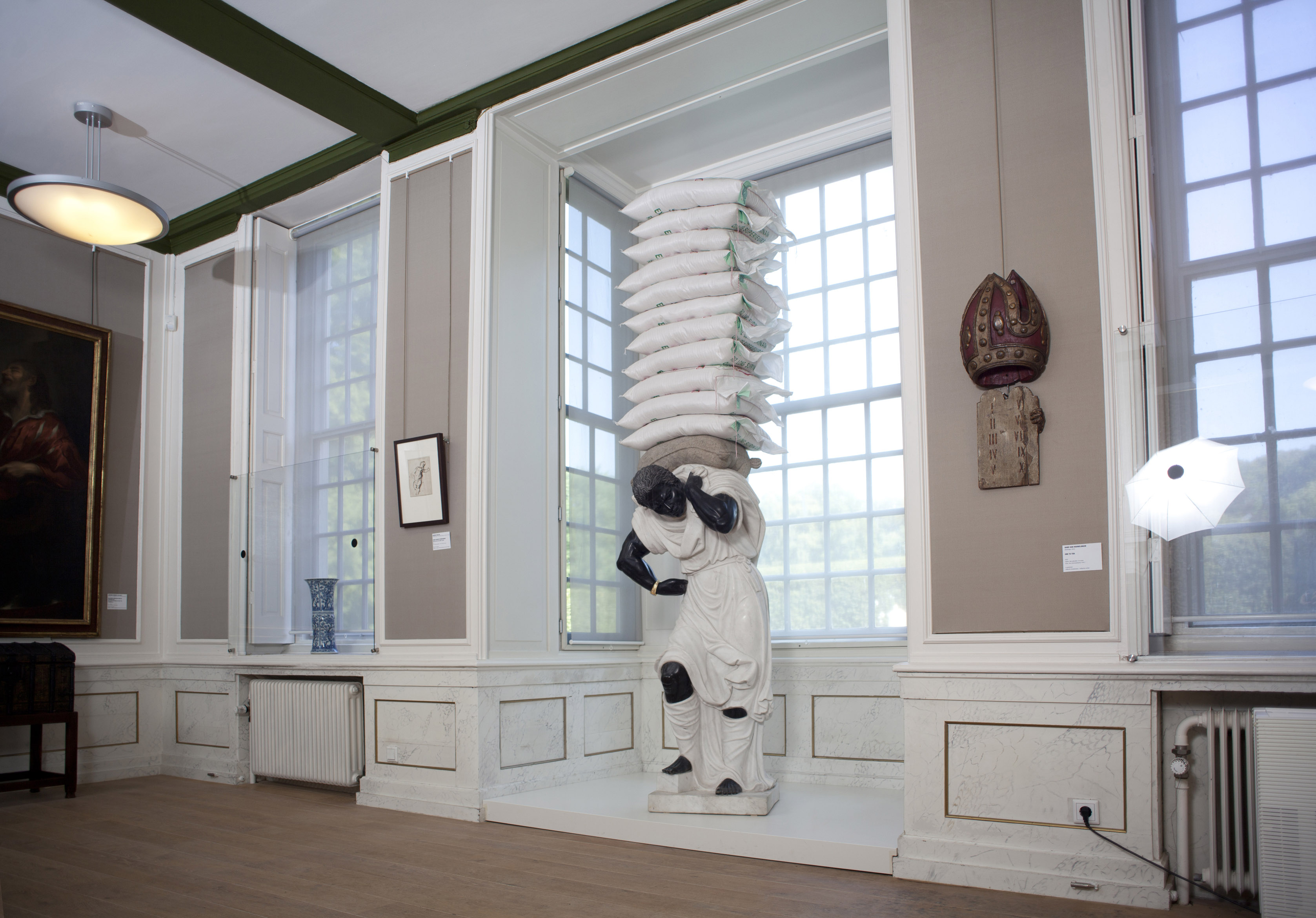 In het historisch rijke decor van Kasteel het Nijenhuis met zijn collectie door Dirk Hannema (1896-1984) verzamelde kunstwerken gaat de tentoonstelling a posteriori in op de frictie tussen actuele en historische condities die het denken over kunst beïnvloeden. Op de uitnodiging een tentoonstelling te maken over de Hannema collectie reageerde Van Houwelingen: “Dirk Hannema is de meest opmerkelijke museumdirecteur uit de Nederlandse kunstgeschiedenis vanwege zijn uitstekende maar ook controversiële verzameling, waaronder meerdere foutieve en dubieuze toeschrijvingen aan beroemde meesters, zijn alom voor onfeilbaar gehouden artistieke oog en absolute gezag over de kunstmarkt, alsook zijn functie in de oorlogsjaren als NSB-Gemachtigde voor het Museumwezen.” Van Houwelingen toont een serie kunstwerken die op zichzelf staan of kritisch reageren op de bestaande collectie, kunstwerken van eigen hand of waarin sprake is van toegeschreven auteurschap en eigendom. Door bepaalde werken aan Dirk Hannema toe te schrijven instigeert Van Houwelingen een morele controverse waar hij opzettelijk zelf in verwikkeld raakt.Hij vermijdt bewust de neutraliteit en comfortzone van een documentaire benadering. “Ik vind de incorrectheid waarmee ik betrokken raak in deze morele tombola aantrekkelijker dan zelf buiten schot te blijven.” Deze kunstwerken en hun kunsthistorische of curatoriale implicaties herschikken de blik op de collectie in een intrigerend samenstel van tijdslijnen en historische misvattingen.
